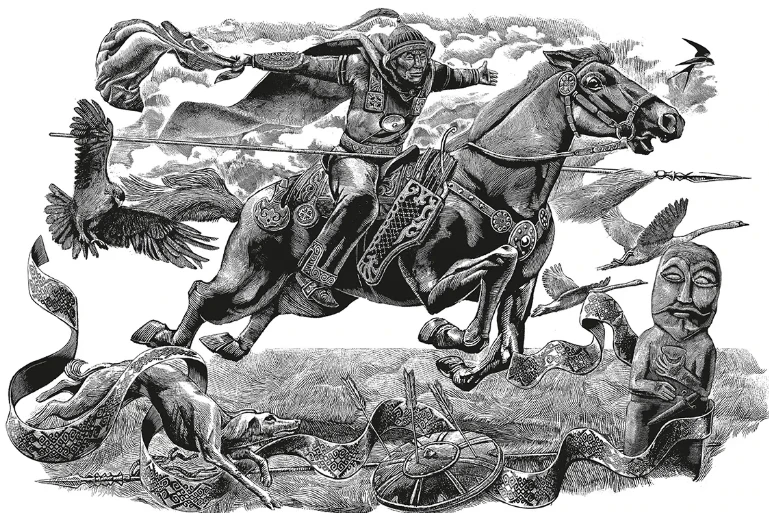 Kulchoro, upon learning of Toltoy’s departure, mounted Taiyburul, donned the semetey akolpok, and,...