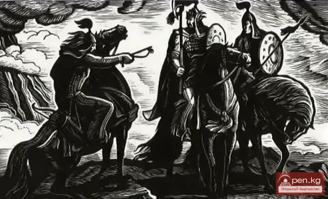 Manas's anger sobered both of them. Seeing that he was genuinely angry, both fell silent and sat on their horses, stunned, not daring to lift their eyes. After a while, Chubak dismounted, placing the reins of his horse around his neck, and approached Alma.