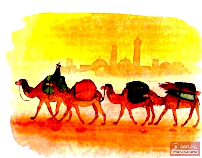 Mamyr began to wait patiently for the return of his beloved wife — he simply had no other choice. Thus, a week passed, then another... From worry and tears, the young hunter grew thin and became like a twig. Having convinced himself that Siyada had disappeared forever and realizing that it was all the fault of the old woman whom he had unexpectedly taken in, Mamyr decided to leave the ill-fated yurt. He sold everything: the horse, the falcon, the hound dogs, the yurt itself, and the livestock. He decided to become a wandering dervish: he bought a donkey, a kurdzhun, a long gray chapan, an ak selde — a fez for his head, and set off to wander through the wide world, seeking solace for his grief in travels.