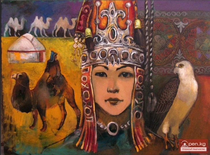 Finally, he agreed. He gave Alymkan money and one hundred camels. The young woman dressed in men's clothing, hung a sword at her waist, and, putting a hand-raised mouse in her sleeve, set off on her journey with a trading caravan.