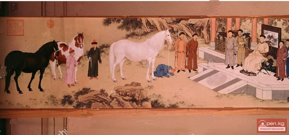 In turn, Esengul, who was oriented towards the Kokand Khanate, could not peacefully coexist with Bey Atake, who sent a delegation to St. Petersburg in 1784 requesting protection. Therefore, Atake preferred to migrate to the Bugyns, who were more interested in Russia than in Kokand. However, some individual Kyrgyz feudal lords showed persistent sympathy towards the Kokand Khan. The reasons for the Kyrgyz turning to the Kokandis were not only the disputes between Kyrgyz feudal lords and Kazakhs but also the desire to secure support from a more powerful neighboring khan against the ambitions of the Qing. According to legends, the manaps of the Sarybagysh clan sent their representatives led by Kuvat, son of Esengul, and Asan, from the Jantay clan, to the ruler of Kokand in 1791. They brought as a gift to Narbutabek 18 of the best racehorses.