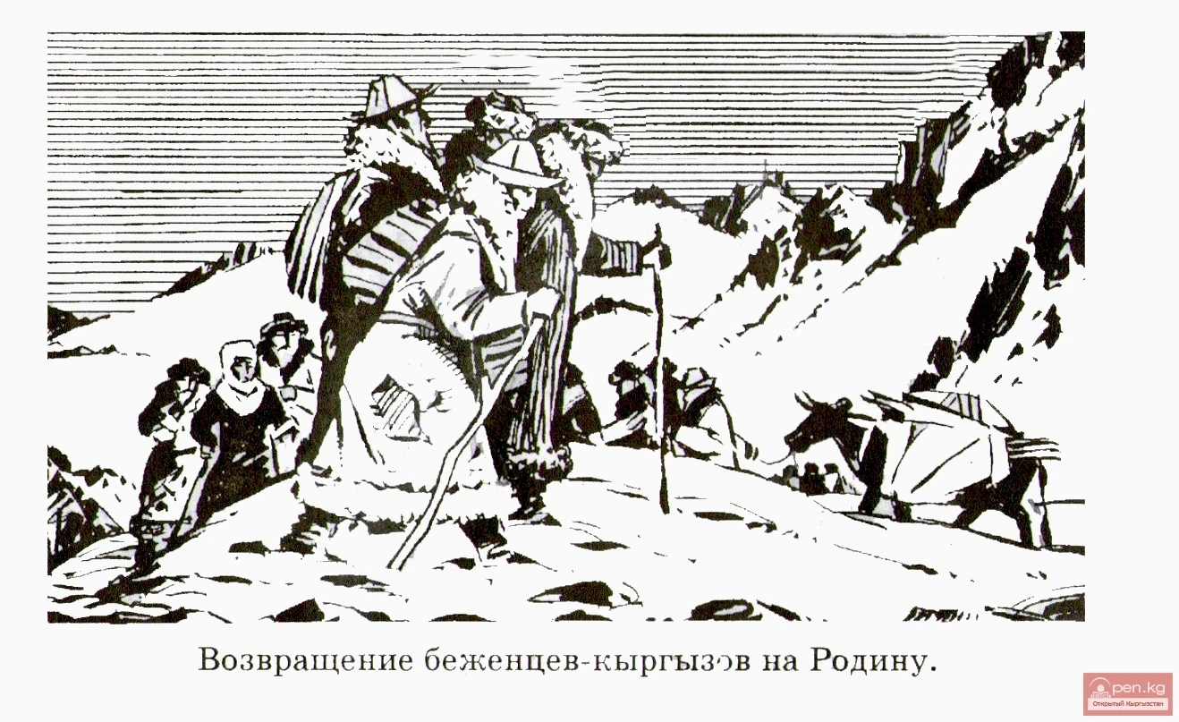 After the overthrow of the tsarist power, Kyrgyz refugees began to return from China to their homeland. They hoped that the new power would return the lands taken from them and protect their rights, but the Provisional Government, on the contrary, decided not to allow the Kyrgyz to return to their native land. Russian kulaks, who had been waiting for this, ambushed the exhausted, unarmed, and defenseless Kyrgyz returning home and dealt with them. Those fit for work were forced to labor in their households like slaves. Those who refused to comply and dared to resist were falsely accused of “rebellion” and sent to prison.