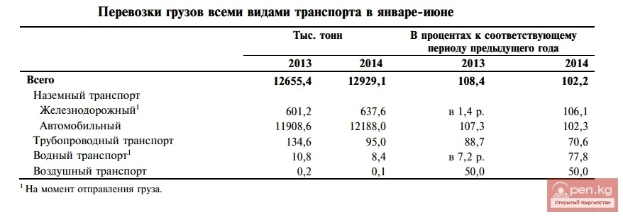 The growth in cargo transportation volumes by all modes of transport was noted in all regions of the republic, but the most significant increase was observed in the Issyk-Kul region.