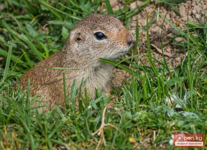 The population of these susliks varies in different regions, with sporadic distribution observed even within the same habitat. The highest density of their settlements is noted in virgin areas located along both banks of the rivers Chui, Sokuluk, and Ala-Archa. On average, there are 30 active burrows for every 100 burrows.