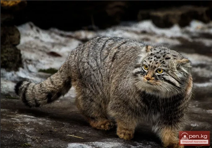 The mountain manul differs from the desert manul in coloration. While the latter has a yellowish-clay or grayish color like most desert animals, the mountain manul is grayer and appears more soot-like. It mainly hunts voles, birds, hares, and occasionally marmots. Offspring are born in May.