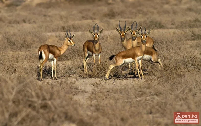 The dzhayran was quite widespread in the Issyk-Kul basin in the 1930s. Currently, it has survived only in isolated areas of the foothills of the Terskey Ala-Too range, including small valleys: Chon-Dzhokutoy, Kichik-Dzhokutoy, and Tonrak-Bel. All of them are located near the central estate of the Ula-Khol state farm. As for the Kochkor Valley, which was inhabited by dzhayrans in the 1940s and early 1950s, they disappeared due to the construction of the Orto-Tokoy reservoir and increased transportation activity. Some dzhayrans were killed by poachers, and the survivors, due to the drastic transformation of their habitats, moved to areas located in the southwestern part of the Issyk-Kul basin. In 1968, another unexpected location where dzhayrans were found was established. This is the Kanigut mountains, located in southern Kyrgyzstan, near the village of Batken. According to reports from geologists (from the geological exploration team) and local residents, they repeatedly saw dzhayrans in numbers of up to 10 heads in 1967. This information about the distribution of dzhayrans in Kyrgyzstan provides some basis for speculation about a broader range of this species in the past.