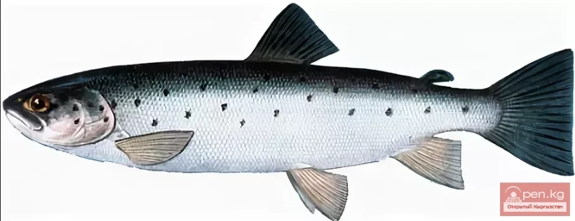 There are 8-9 rays in the dorsal fin (III—V), 8-9 in the anal fin (III); there are 104-117 scales in the lateral line. In Issyk-Kul, it can reach a weight of 17 kg or more. Following the recommendation of Academician L. S. Berg, Hegarkuni trout was introduced to Issyk-Kul from Lake Sevan (Armenia) in the form of fertilized eggs in 1930 and 1936. The first batch consisted of 750,000 eggs, and after the larvae hatched, they were released into the Irdyk Bay (near the mouth of the Jergalan Bay). Subsequently, another 800,000 eggs were brought in, and after the larvae were incubated, they were released at the mouth of the Ton River.