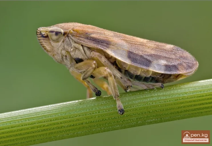 The spittlebug is a broad polyphage, damaging grain, vegetable crops, potatoes, sugar beets, grapes, strawberries, wild strawberries, currants, dahlias, fruit trees, tobacco, cabbage, alfalfa, buckwheat, fodder beets, and many other plants in various climatic regions. The activity of the pest causes leaf wrinkling, underdevelopment of ovaries, and deformation of generative and vegetative organs.