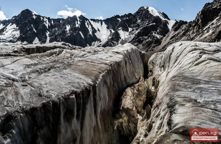 The highlands of the Kyrgyz Range feature a deeply dissected alpine relief, which results in a variety of glacier forms. The majority of glaciers belong to the cirque and valley types, with many hanging glaciers and various transitional forms. Many glaciers over different areas are covered with debris, and almost all have powerful modern moraines. Extensive zones of fractures, icefalls, and ice dumps are often encountered. The Karamoynok Range is characterized by cirque glaciers, often "covered" by a moraine shell. Icefalls are virtually absent here, and there are generally few crevasses.