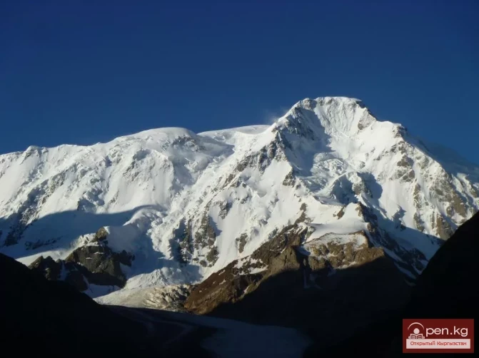 As you ascend to Peak Karakol, the rock of the Ontor Pass appears to the east, followed by the summit of Djigit. From the west, this summit seems even more impregnable than from the north side of the glacier. Between Peak Djigit and Karakol, on the Terskey ridge, lies the summit of Baby Elephant, and a little further east is the Festival Peak. Its height is about 5000 m.