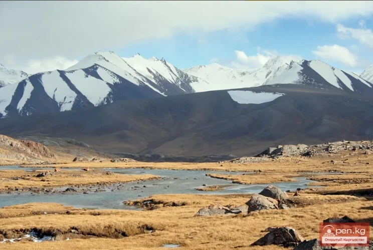 In the watershed between the basins of the Sary-Jaz and Naryn rivers lies the second largest glaciation node in the former Soviet Tian Shan - the Akshiyrak massif. It borders the southern slopes of the Terskey Alatau ridge and the Kuilu massif, being separated from them by the Sarychat River, which further downstream is called Irtysh and Uch-Kel and is a left tributary of the Sary-Jaz River. To the west, the massif is adjacent to the Kumtor ridges, which stretch 50-60 km in length and 20-30 km in width.