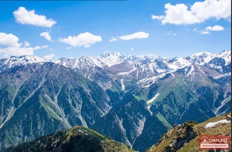 The Zailiyskiy Alatau (Ili Alatau) is the northernmost ridge of the Northern Tian Shan. The name of the mountains was given by the Russian geographer and traveler P. P. Semenov. When he arrived at the Iliyskiy checkpoint in 1856 and saw a high snow-covered mountain range across the river, he named it the Zailiyskiye Mountains. Subsequently, the name transformed into Zailiyskiy Alatau. The western border of the ridge is formed by the Chu River, and the eastern border is the Shilik River. To the south, beyond the deep longitudinal intermountain valleys of the Chon-Kemin and Shilik rivers, lies the parallel Kungey Alatau ridge. Both of these ridges are connected by a saddle, forming the Shilik-Kemin mountain knot.
