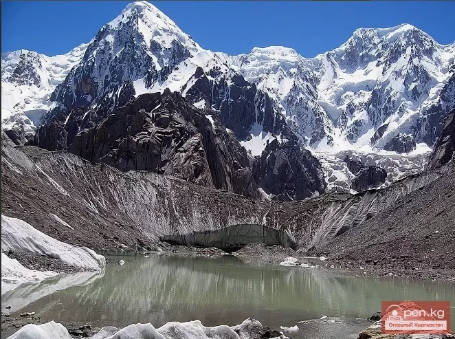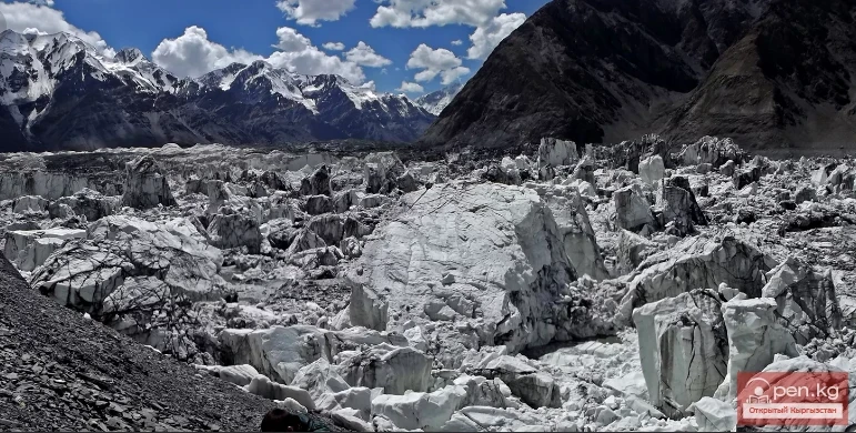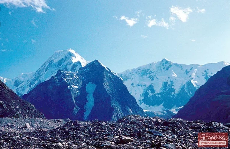 "Inylchek" from ancient Turkic means "little prince." But the "prince" turned out to be not so little: the Inylchek Glacier, in terms of length and area, is one of the largest high-altitude glaciers in the world: its length is about 60 km, slightly less than the lengths of the glacial giants of the Karakoram, such as Siachen, Biafo, Baltoro, Batura, or the length of the largest glacier in the Pamirs, the Fedchenko Glacier. In terms of total area, Inylchek is also one of the most massive valley glaciers, covering about 700 square kilometers. The Tengri-Tag Ridge with the Khan-Tengri peak divides it at its upper reaches into two arms: the Northern and Southern Inylchek, and sharply drops at the confluence of these arms with a rock named "Armored Cruiser" due to its resemblance to the bow of a huge ship. From the side of the Northern Inylchek, the Merzbacher Lake spreads out at this point, with a bottom formed by immobile, so-called "dead ice."