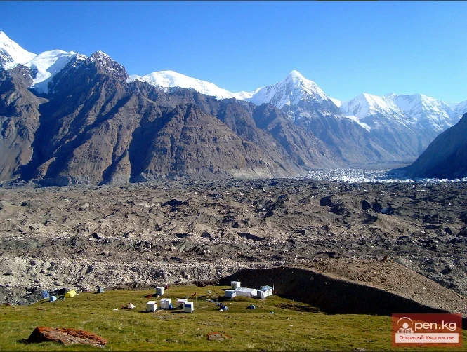 On the northern slope, the Semenov and Mushketov glaciers are located, and at the foot of the southern slope is the North Inylchek glacier. There are also small glaciers in the ridge area. The Tez Pass serves for the transhumance of sheep herds.