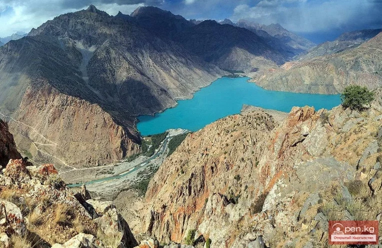 The area in the southern part of the Fergana Ridge lies at the junction of the Tien Shan and Pamir-Alai. From this area, it is not far to both the end of the Alai Ridge and the end of the Kokshaal-Tuu Ridge.