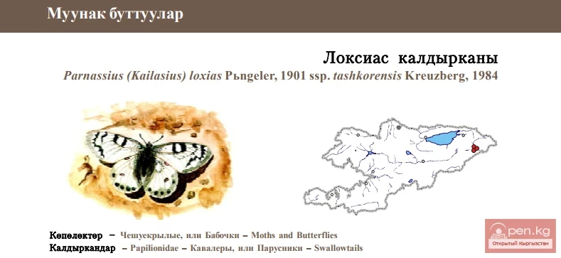 Parnassius (Kailasius) loxias Pьngeler, 1901 ssp. tashkorensis Kreuzberg, 1984