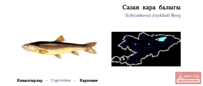 Status: Category 2 [EN: D], rare endemic Issyk-Kul species with declining numbers, one of four congeners in the fauna of the country. The species is valuable for fishery. It populates all offshore waters in Issyk-Kul Lake but prefers northern shores, a usual inhabitant of desalinated zones in Tyup, Jergalan, and Pokrovsky Bays. It migrates in winter to deeper places 40-60 m down. It feeds on both animals and plants (mainly shellfish and stonewort); large individuals are also piscivorous. The spawning period is from May to mid-July; 10-20% of individuals spawn in stages. Fertility ranges from 1,200 to 93,000 eggs; the spawn is large, sticky, and toxic, laid on stony eminences. The population is insignificant; 50 years ago, the ratio of this species in the total catch was 3%, but now only single individuals have been registered. Limiting factors include legal fishing and poaching, deterioration of conditions for natural renewal, and the introduction of predatory fish species. There is experience in breeding this species in Kyrgyzstan. Currently, it is not under any protection. To conserve the species, it is necessary to prohibit amateur fishing and industrial fishery, organize breeding, protect sites of natural propagation, and continue studying the causes of its low abundance.