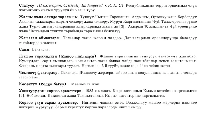 Barbary Falcon Status: Category III, Critically Endangered, CR: R. Kyrgyz ornithologists believe...