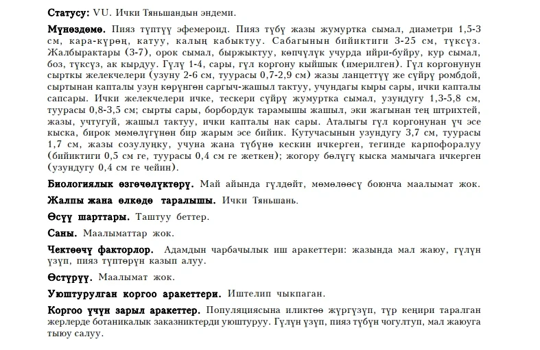 Semenov’s Onion Status: VU. Endemic to the Inner Tien Shan....