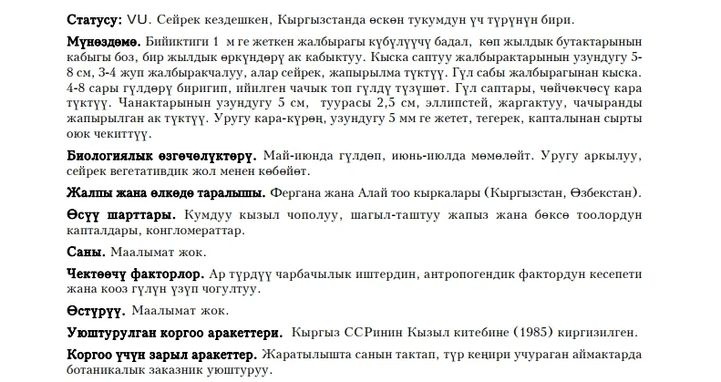 Korolkov’s Pagoda-tree Status: CR. The only species of the genus found in Kyrgyzstan....