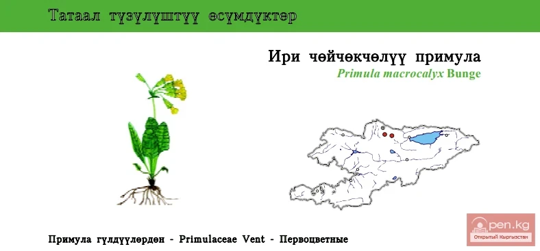 Status: VU. This sporadically distributed widespread species is a rare, very narrowly spread plant in Kyrgyzstan. The specific area is mosaic and includes Eastern Europe, the Caucasus, Iran, Northern Tien Shan, Western and Eastern Siberia. In the Republic, it is distributed in the Alexander Mountain Range (the area between the rivers Kegety and Taldy-Bulak) and occurs at glades and meadow slopes in the forest zone and in tall-herb meadows. Period of flowering: May; reproduction is generative (by seeds); the species is unstudied in culture in Kyrgyzstan. The number in nature is insignificant. Limiting factors: mass collection of flowers and harvesting as a medicinal and vitamin-rich plant. It is necessary for the renewal of numbers and the conservation of the area: to organize special protection of habitats and to introduce it in botanical gardens as a plant of ornamental and medicinal value.