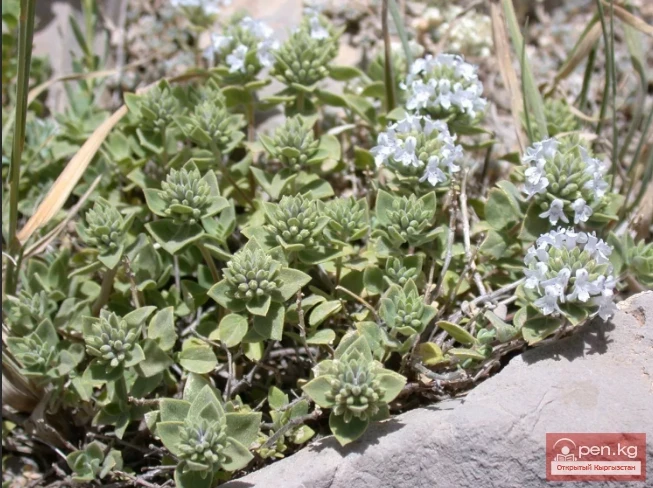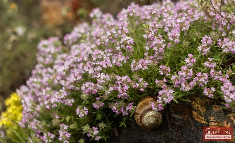 Thyme, or Thymus (in Kyrgyz, kekemeren). This is another important essential oil plant. In the USSR, 136 species grow, six of which are found in Kyrgyzstan. All species of this genus growing in Kyrgyzstan contain essential oils.