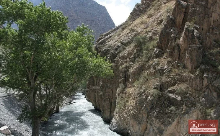In the high-water period, mainly in summer, the river has a turbulent flow with chocolate-colored water due to the presence of sand and clay. The water is very cold. In some areas along the banks, small tugai forests have survived, overgrown with shrubs such as jida (wild olive), sea buckthorn, and others. In 1962 and 1973, serious mud and stone flows occurred on the Isfayramsay, leading to the evacuation of the city of Kuvasay and nearby settlements.