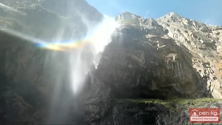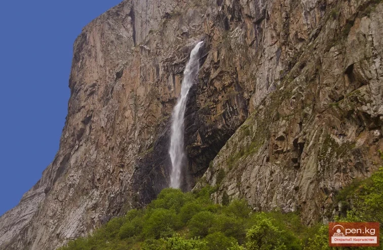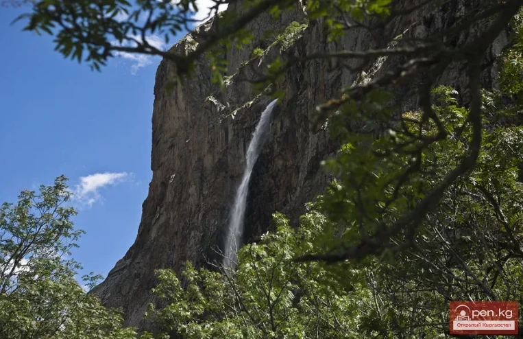 The road to the waterfall takes 1.5-2 hours and runs along the riverbank. Along the way, there is a stunning view of one of the peaks of the Kyrgyz range, "Black Spire" (4000 m). The rock got its name due to its dark color, which does not change in any weather.