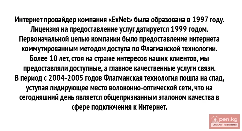 Providing Internet access EXNET, Company