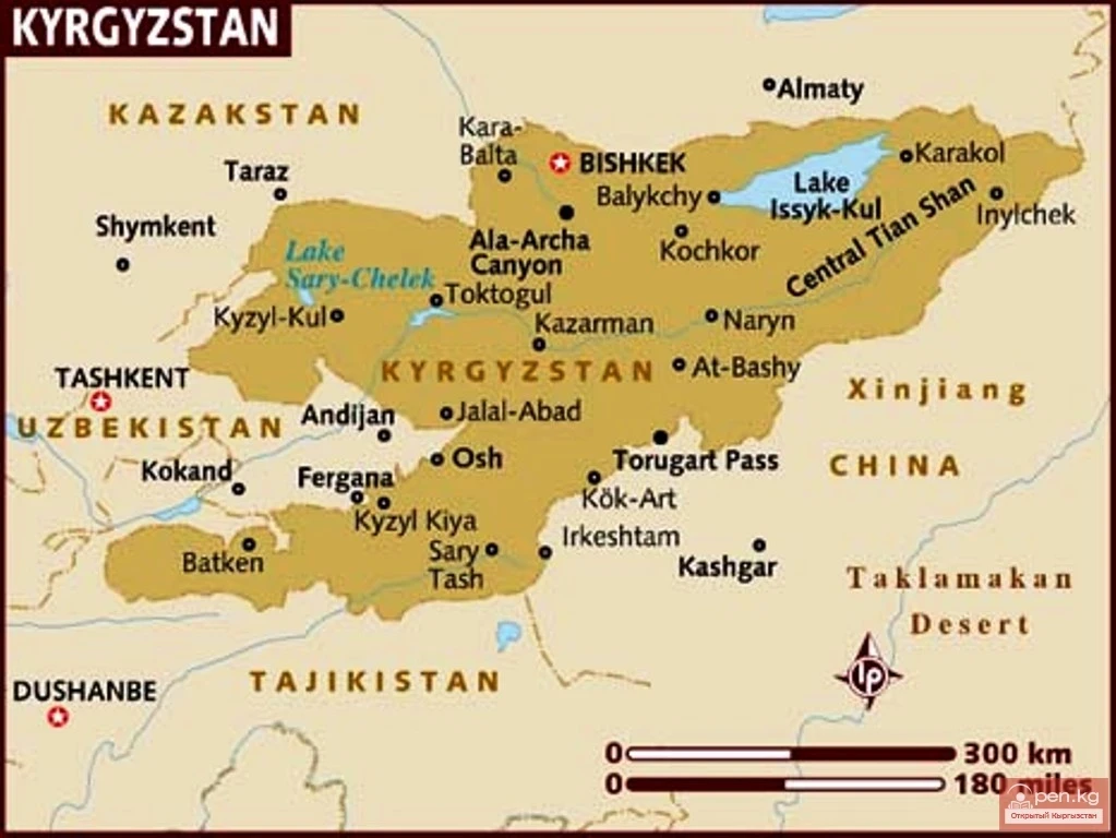 The borders of Kyrgyzstan mainly follow natural boundaries — the crests of high mountain ranges and rivers.
