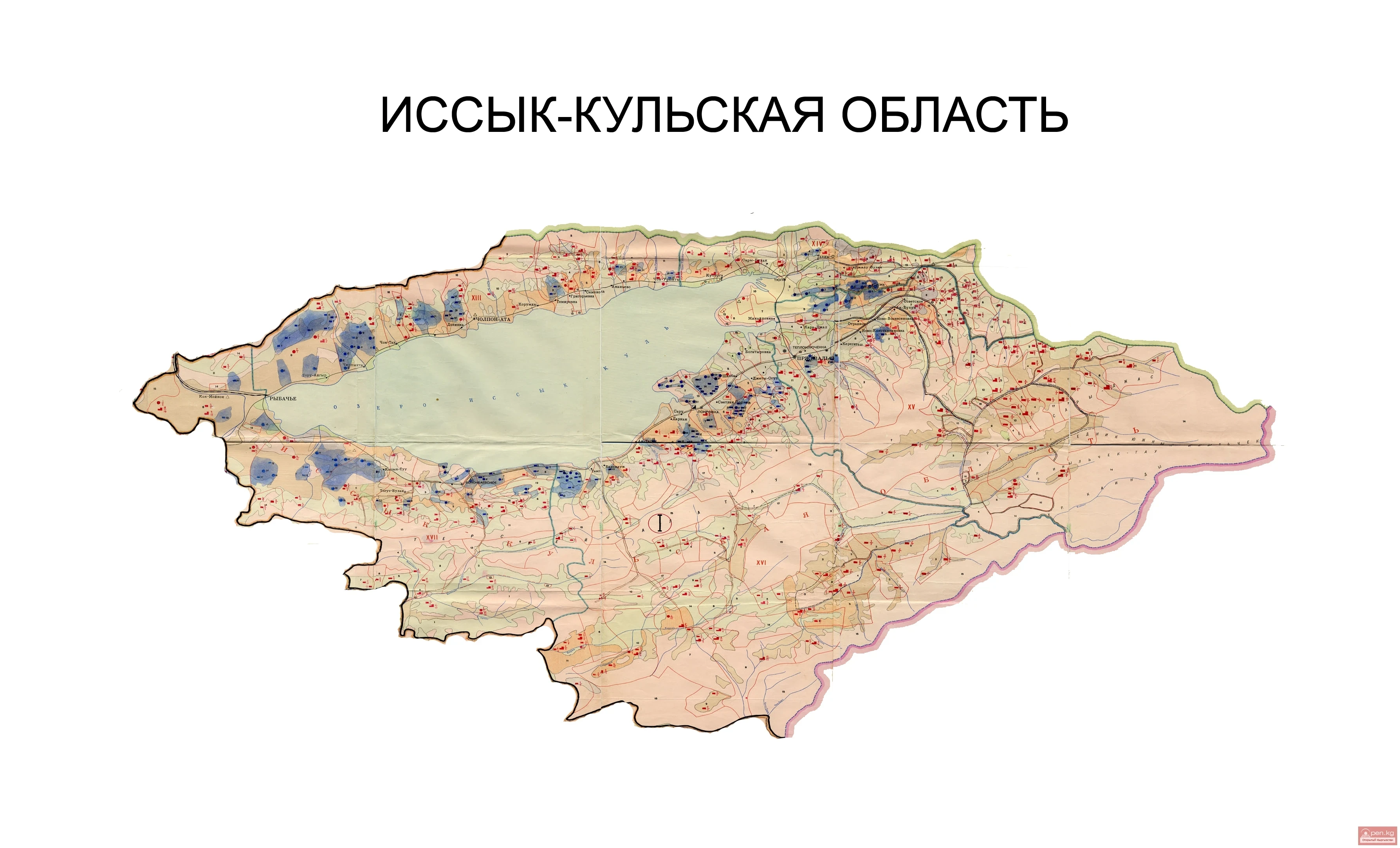 Among the minerals of the region, gold (Kumtor deposit) occupies a primary place. The economy of the Issyk-Kul Region is based on promising tourism, recreational resources, and the mining industry. The main wealth of the region is Lake Issyk-Kul, its pleasant sea air, sandy beaches, thermal and mineral waters, healing mud, and sanatorium-resort complexes located around the entire lake.