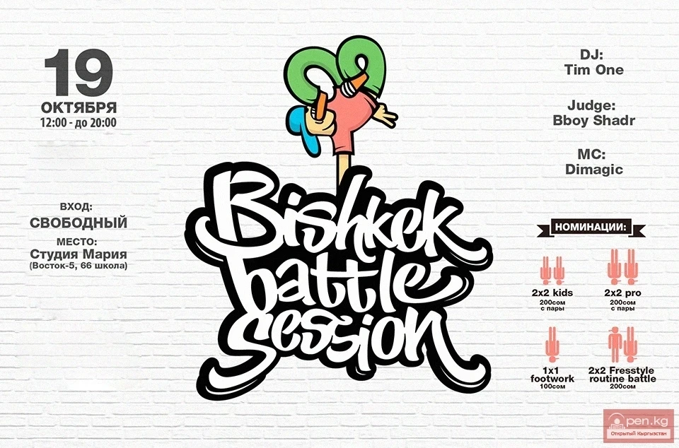 On October 19, a breakdance championship called Bishkek Battle Session will take place in Bishkek at school No. 66, featuring dancers from Bishkek, Kant, Belovodsk, and Kara-Balta.