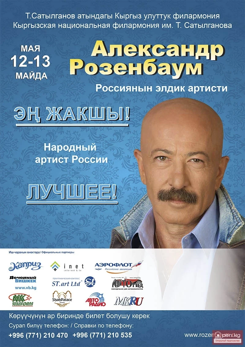 We invite you to attend the concert of the Honored Artist of the Russian Federation, People's Artist of the Russian Federation, Alexander Yakovlevich Rosenbaum.