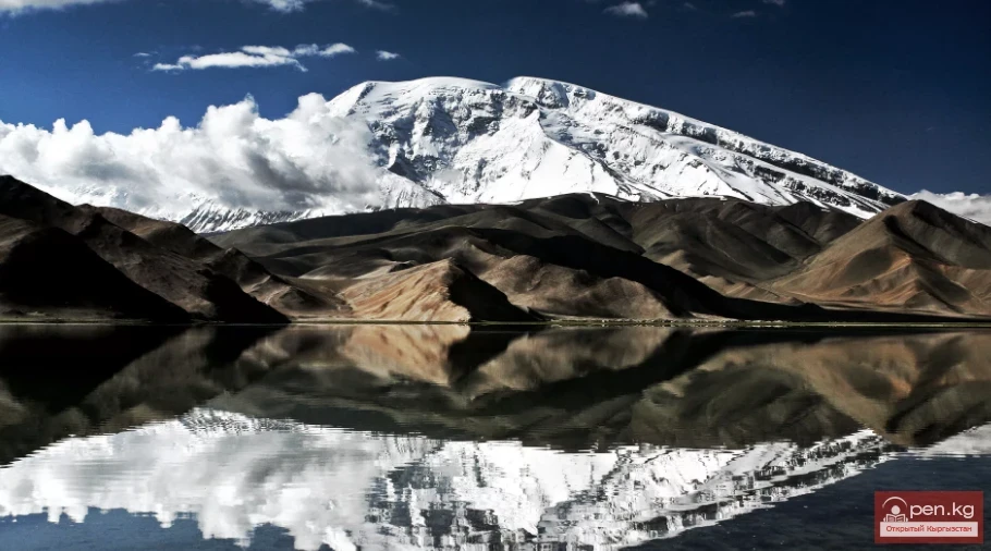 Not far from the lake runs the Chinese border with Tajikistan. The lake is situated in the mountains, and there is not a single stream nearby. From above, it resembles a mirror spot on the mountain peak.