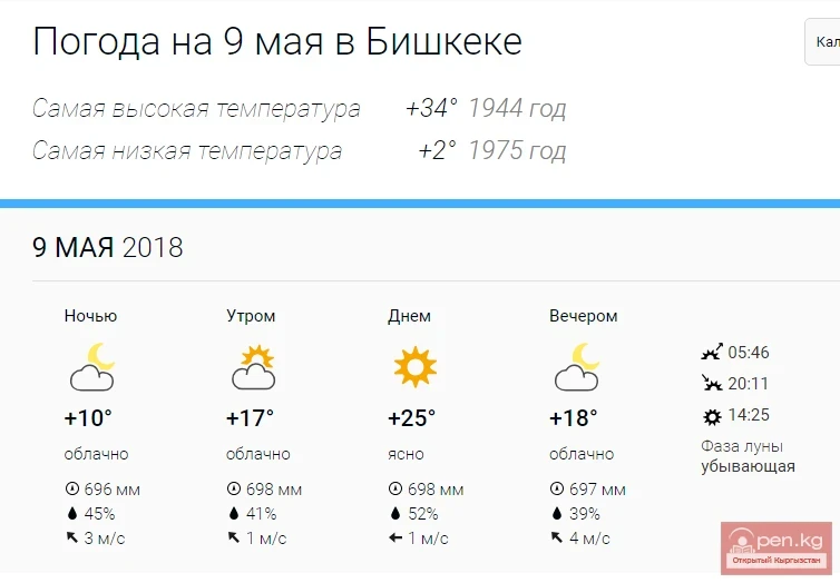 On Wednesday, May 9, there will be no precipitation in the republic, reports Kyrgyzhydromet.