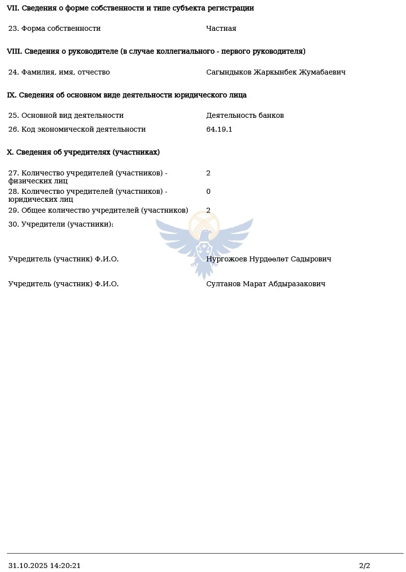 Currently, the bank is in the process of completing the organizational procedures necessary to obtain a license and commence its operational activities.