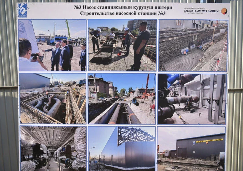 During the construction, work was done to strengthen the western bank of the Alamedin River, a 120-meter passage channel was built, four pipelines with a diameter of 1000 mm were laid, and a pumping station building with an area of 576 m² was erected. Inside, eight modern pumps were installed, each capable of pumping 2500 m³ of water per hour, along with a transformer substation with two transformers.