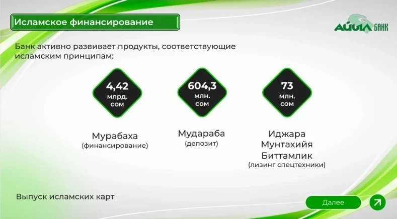 The head of the bank reminded that in 2022, “Aiyl Bank” received a license for Islamic financing from the National Bank of the Kyrgyz Republic. Currently, three products are offered: