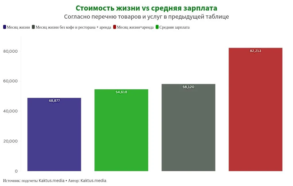 There are different ways to compare living expenses. The Numbeo service is one of the largest databases on the cost of living, collecting data from users. These figures differ significantly from the statistics provided by the government.Based on Numbeo data, we calculated how much it costs to live for a month in Bishkek. Kaktus.media prepared a list of necessary products and services for a comfortable life for one person in the capital, including rent, utilities, internet, transportation, and food. This is a basic set necessary for living without excesses.