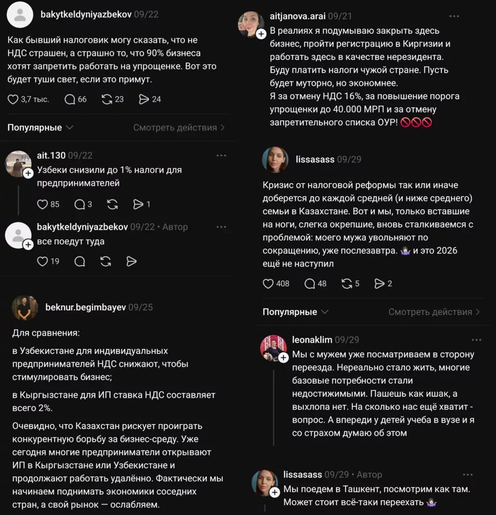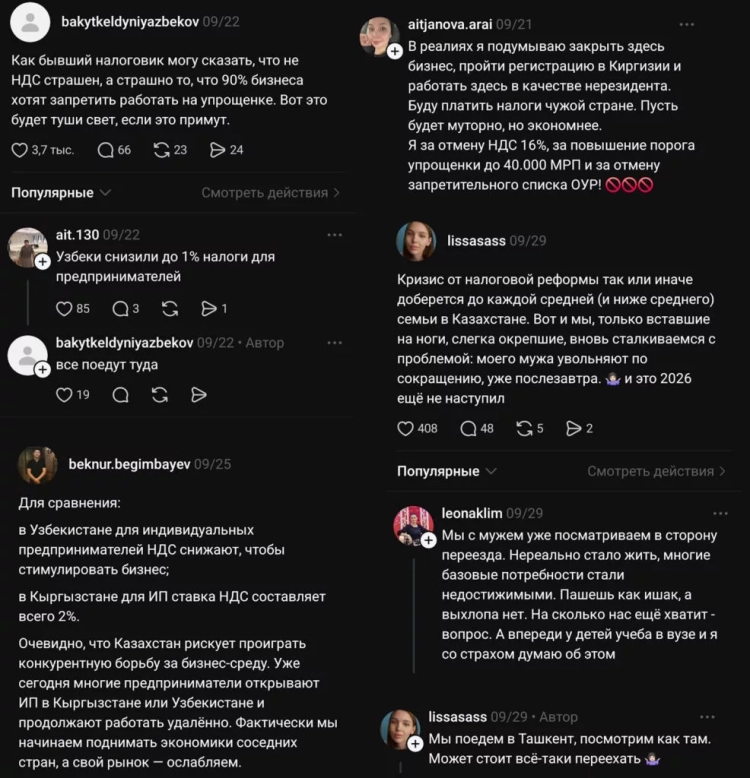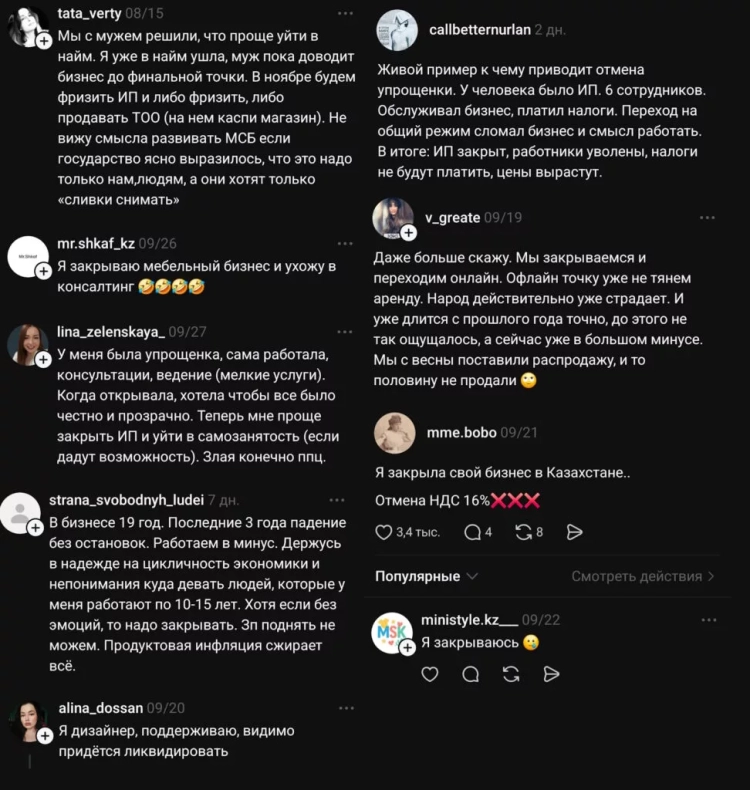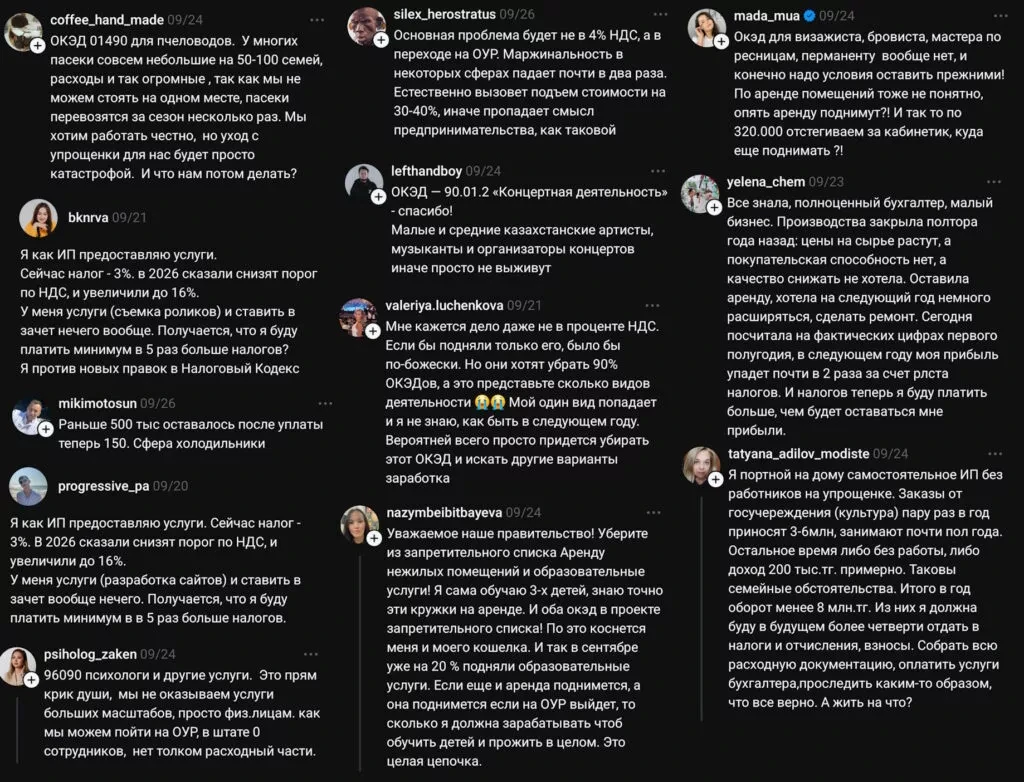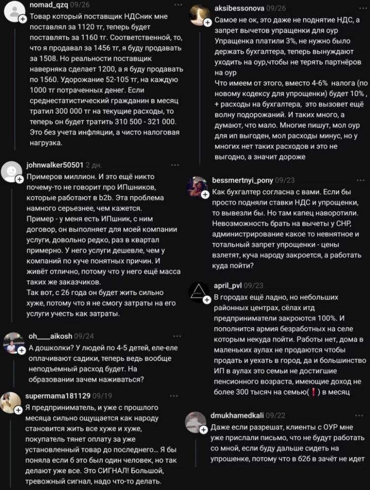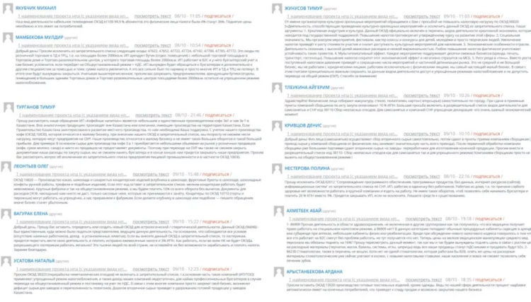 The publication Caravan.kz shares citizens' opinions on the negative consequences and how changes in the tax system are already affecting the country. This project has become one of the most discussed on the "Open PNA" portal, where it is almost impossible to find support for the proposed amendments among the comments.