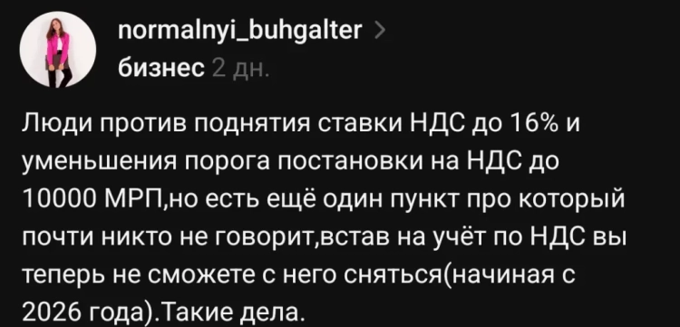 "As for the final cost: you overlook the fact that VAT is paid at all stages of production, logistics, and sales. This can lead to an increase in cost by 15-20%. For example, a basket of groceries costing 20,000 tenge may end up costing 25,000. And this applies not only to goods but also to services, which will ultimately contribute to inflation. Overall, this will bring nothing good."