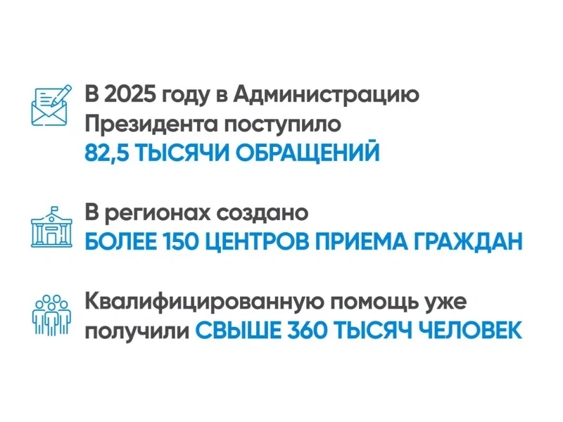 The implementation of the "Listening State" concept remains one of the priority areas of work. In 2025, the president's administration received 82,500 appeals.