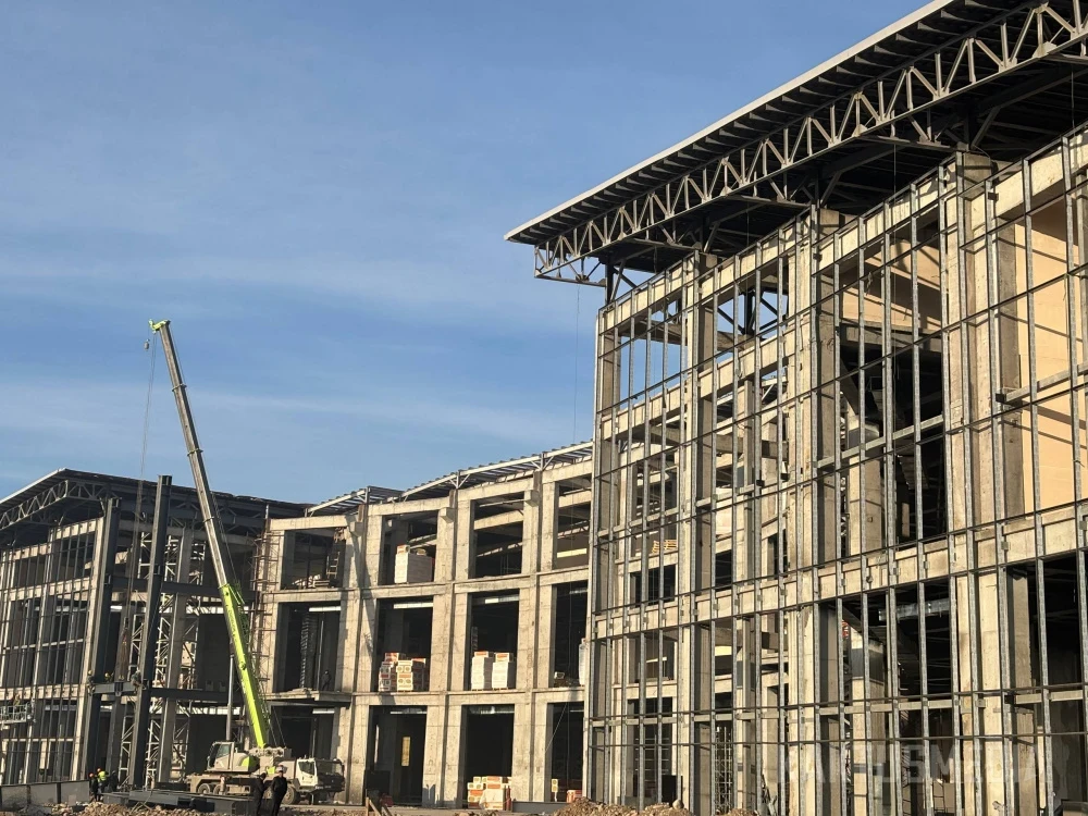 Currently, the monolithic work is 90% complete, and the division of retail spaces and the construction of transitions between blocks is actively ongoing, some of which are already glazed.