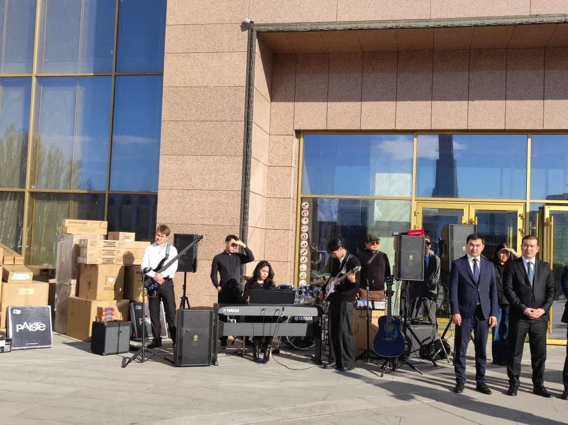 A solemn ceremony was held in Bishkek during which musical instruments were handed over to vocal-instrumental ensembles (VIA) of educational institutions related to culture and art. The event took place in front of the National Historical Museum and was organized as part of the Ministry of Culture, Information, and Youth Policy of the Kyrgyz Republic's annual meeting.