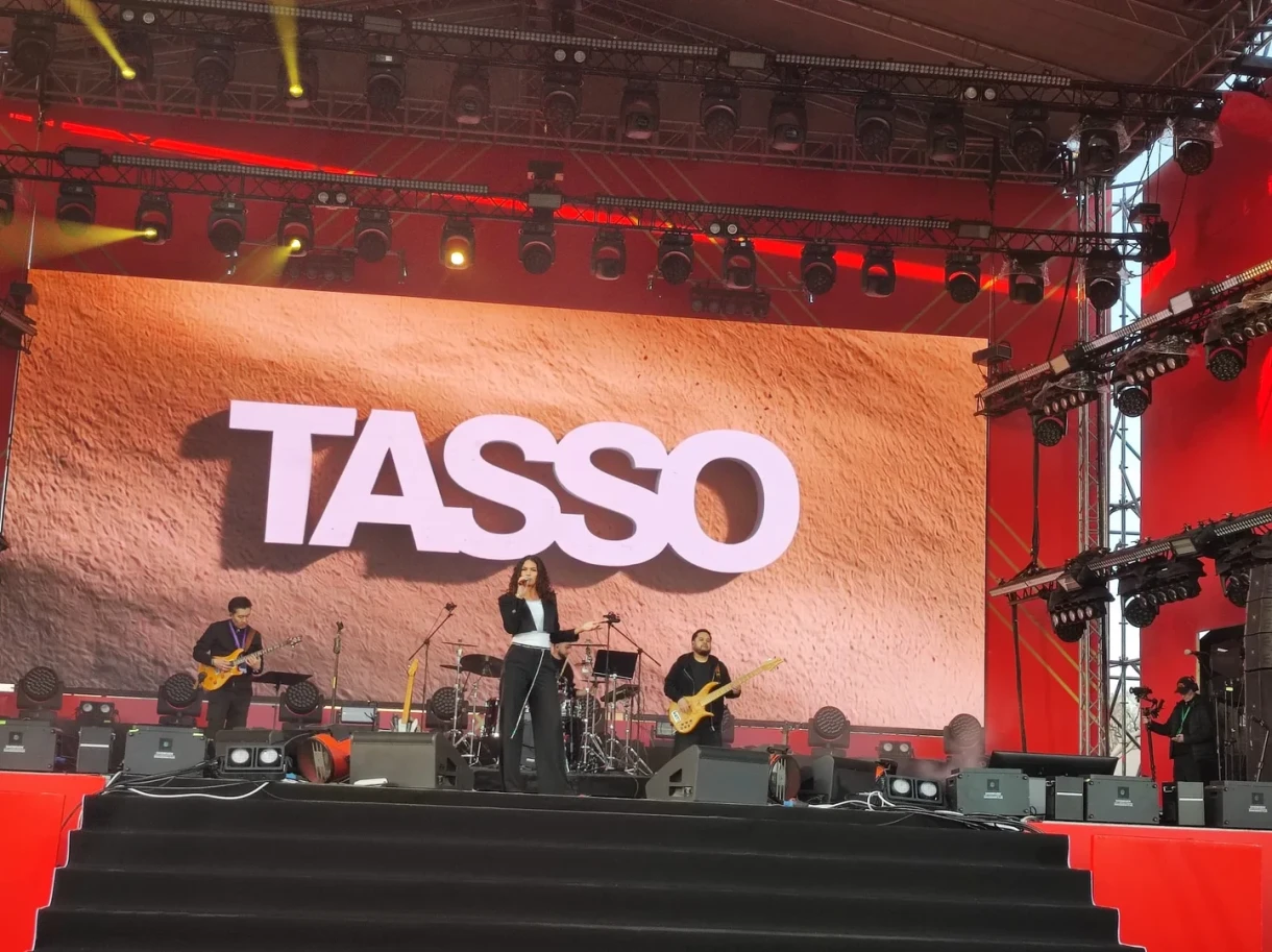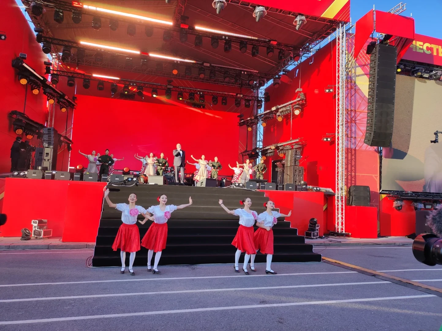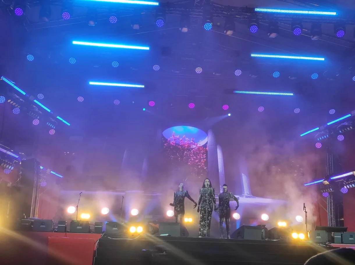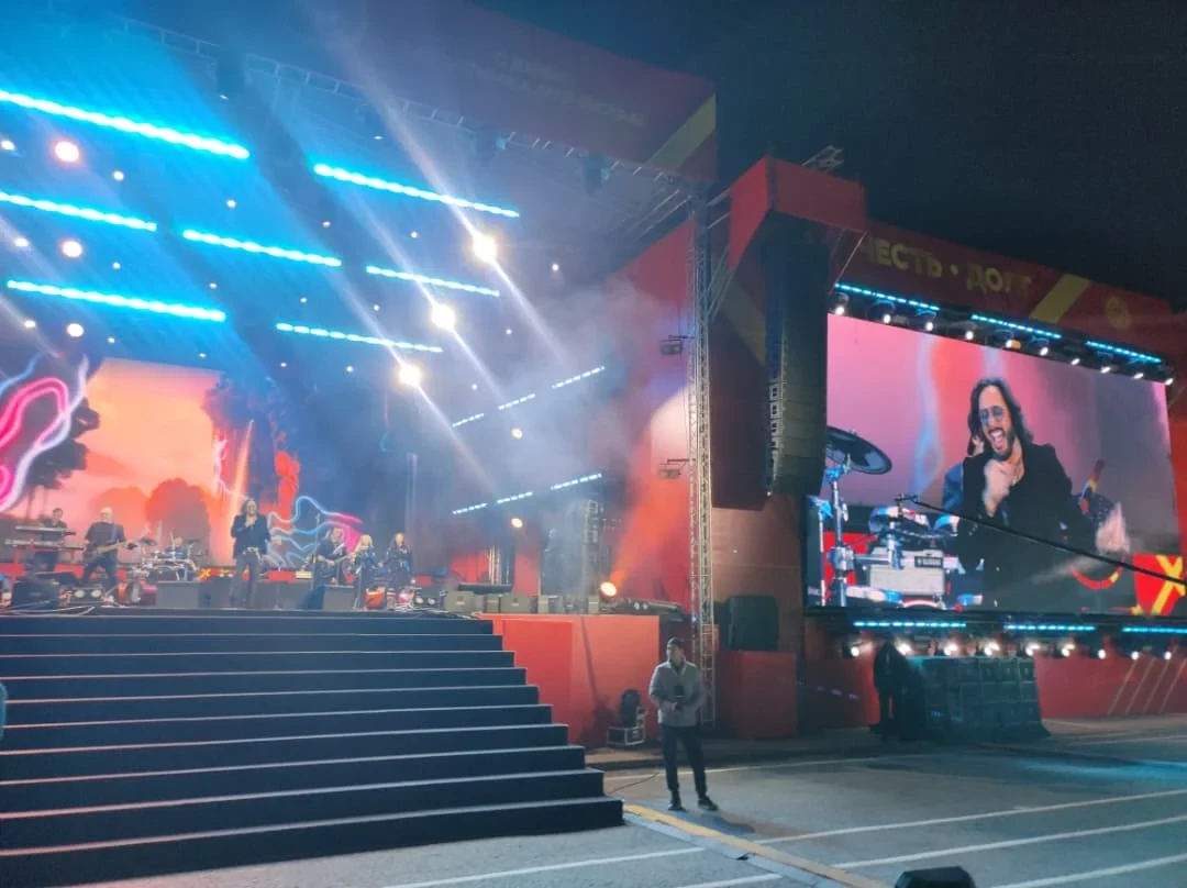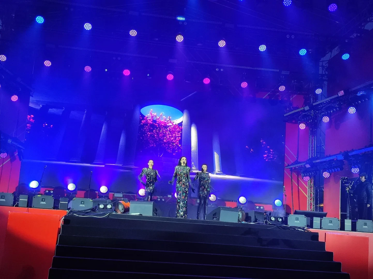 With the start of the event at 5:00 PM, the square filled with thousands of spectators, creating a vibrant and festive atmosphere, actively singing along and dancing to the music of the artists, as well as supporting them with loud applause. ```