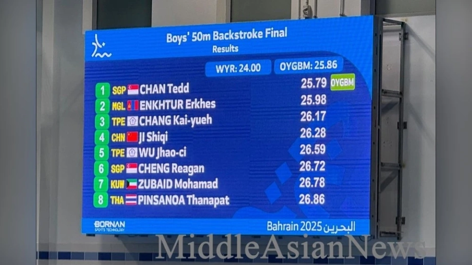 At the competition, ERKHES Enkhtur took second place in the 50-meter backstroke, achieving a time of 25.98 seconds. The first position was taken by Chan Tedd from Singapore with a time of 25.79, while the bronze medal was won by Chang Kai Yue from Taiwan, who clocked 26.17.
