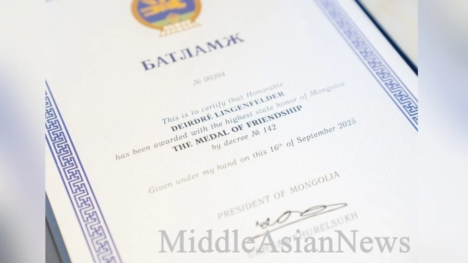 Deirdre Lingenfelder, the Executive Director of Oyu Tolgoi, has received the Mongolia Friendship Medal for her significant contribution to the development of the mining industry.
