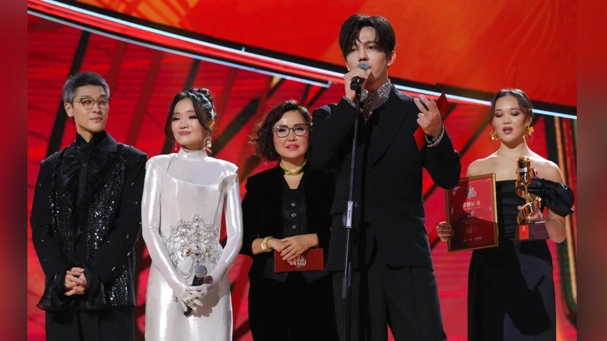 Representatives of the Presidential Television and Radio Complex of Kazakhstan came out to present the winner's award: the head of the Eurasia Bureau of China Media Group Wang Delu and the general director of the Television and Radio Complex Raushan Kazhibaeva.