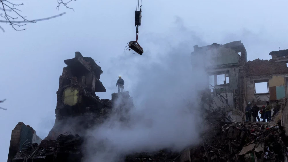 Work on the ruins in Ternopil after a missile strike. Photo Reuters / Thomas Peter.