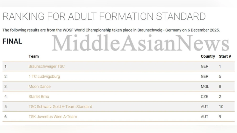The Mongolian team took third place in the standard dance category at the WDSF World Championship, becoming the only representative from Asia in the competition.